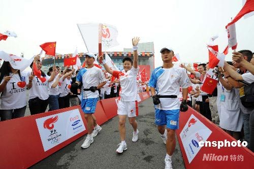 8月5日,奧運火炬在四川成都傳遞,射擊冠軍張山擔任首棒火炬手傳遞火炬。 中新社發 廖攀 攝