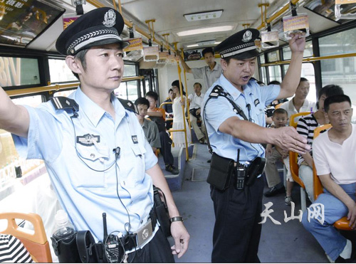 從7月4日起,全市公交警察上車執勤,查看是否有可疑人員和物品,并監督和配合安全員對乘客進行開包檢查。