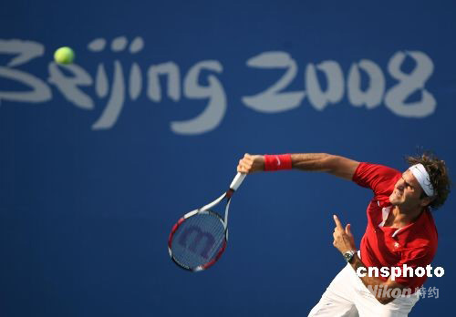 瑞士天王費德勒在北京奧運網球賽場積極備戰。 中新社發 武仲林 攝