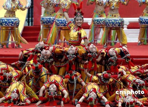 圖:精彩文藝表演助陣北京奧運火炬?zhèn)鬟f