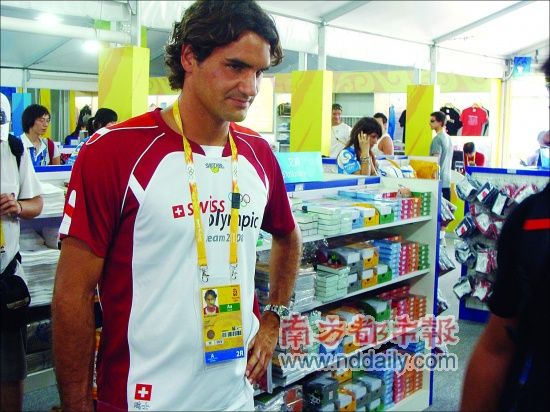 費(fèi)德勒在奧運(yùn)村輕松逛商場(chǎng)。特派記者徐顯強(qiáng)攝