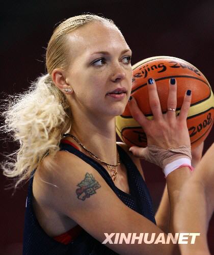 奧西波娃是俄羅斯隊的中鋒,她不僅球技了得,而且對時尚的追求也一點不差。項鏈、耳環、戒指、美甲、紋身也一個都不少,配上高挑的身材,堪稱女籃賽場的時尚達人。新華社記者孟永民攝