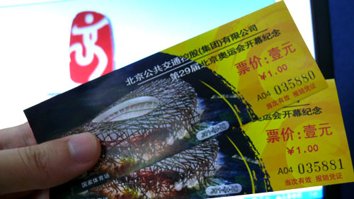 8月8日,2008北京奧運(yùn)會開幕普通紀(jì)念車票開始在北京市公交集團(tuán)所屬的全部公交線路上發(fā)售,乘客在京乘坐公交車時(shí)可以購買。