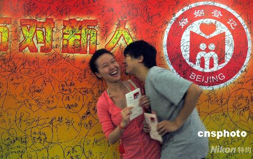 圖:奧運開幕日 北京迎來結(jié)婚高峰