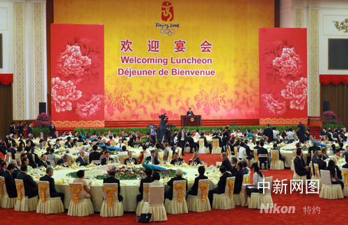 中新網(wǎng)8月8日電 中國國家主席胡錦濤主席今日中午在北京人民大會堂宴會廳舉行國宴,歡迎前來參加北京奧運會的各國和地區(qū)的貴賓。胡錦濤在宴會上致辭,致辭全文如下: