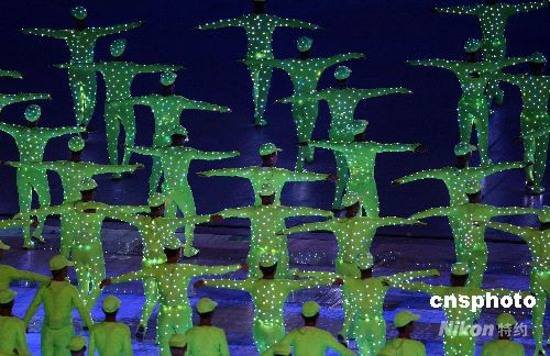 第二十九屆夏季奧運會8月8日晚在北京奧林匹克公園內的國家體育場舉行開幕式,眾多“星光人 ”的表演令人激動不已。中新社發 任晨鳴 攝