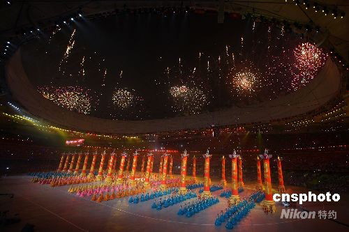 圖:奧運開幕式禮樂配禮花氣勢恢弘