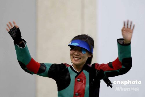 8月9日,北京射擊場,中國選手杜麗微笑入場參加女子10米氣步槍決賽。中新社發 盛佳鵬 攝