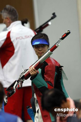 8月9日,北京奧運(yùn)會(huì)開(kāi)賽的第一天,女子10米氣步槍決賽在北京射擊館進(jìn)行。中國(guó)選手杜麗無(wú)緣金牌,捷克選手卡特日娜·埃蒙斯獲得首枚金牌,同時(shí)也是北京奧運(yùn)會(huì)產(chǎn)生的首枚金牌。中新社發(fā) 盛佳鵬 攝