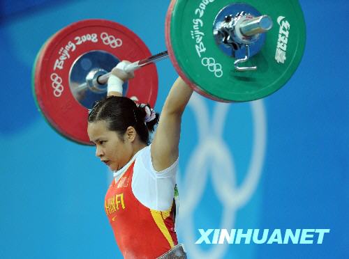 中新網8月9日電 首次參加奧運會的中國運動員陳燮霞以抓舉95公斤,挺舉117公斤,總成績212公斤破奧運紀錄,并奪得奧運女子舉重48公斤級金牌。這也是中國軍團在2008年奧運會上的首枚金牌。