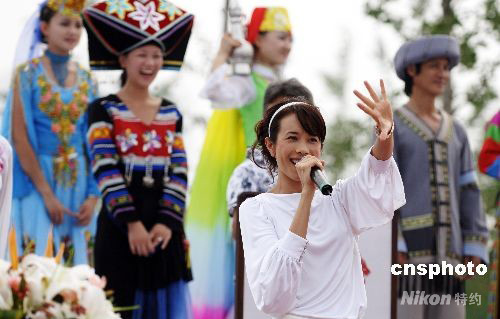 8月9日,大型文化展示活動(dòng)《中國故事》在北京奧林匹克公園公共區(qū)正式開幕,香港影視歌三棲明星莫文蔚與少數(shù)民族演員同臺(tái)演出。中新社發(fā) 王東明 攝