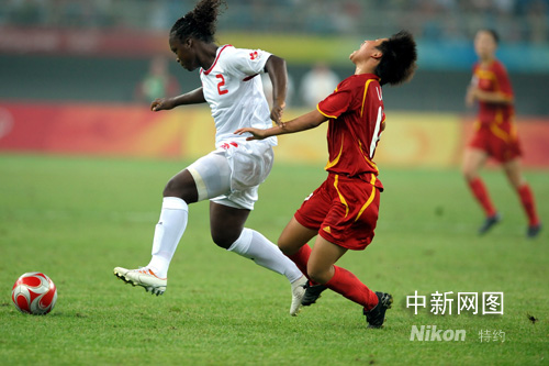 8月9日晚,奧運女足中國隊在天津一比一戰平加拿大隊。中新社記者 陳文 攝