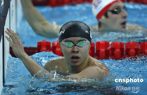 8月9日,日本選手北島康介在男子100米蛙泳預賽中,以59秒52的成績進入半決賽。中新社發 杜洋 攝