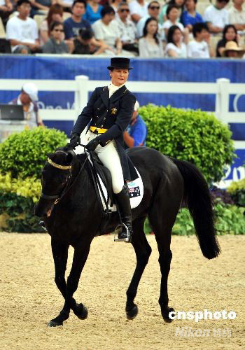 八月十日,北京奧運馬術三項賽個人賽之盛裝舞步環節的賽事在香港沙田奧馬賽場結束。澳大利亞馬術隊在這一環節積分暫時領先。中新社發 鄧慶樂 攝