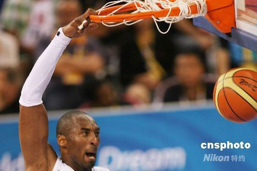 圖:北京奧運會中美男籃大戰(zhàn) 科比大力扣籃