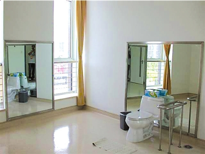 興奮劑檢查站尿檢室配有兩面大鏡子。