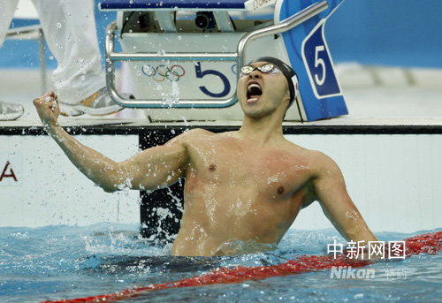 8月11日,在北京奧運會游泳男子100米蛙泳比賽中,日本選手北島康介以58.91秒成績打破世界紀錄奪得該項目冠軍。中新社發 杜洋 攝