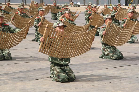 “我們前四個八拍動作取名為“禮之用,和為貴”,一開場就要把古代文人的氣質淋漓盡致地刻畫出來,要高傲,要自然,要放松,所有軍人姿態都要改過來……”第一天,導演們的一串“連環炮”就讓激情昂揚的參演官兵傻了眼。