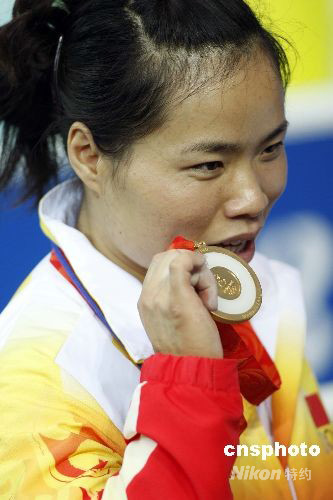 8月11日,北京奧運(yùn)會(huì)開賽以來的第三天,女子舉重58公斤級(jí)的決賽在北京航空航天大學(xué)體育館拉開戰(zhàn)幕。中國(guó)選手陳艷青表現(xiàn)出色,她以總成績(jī)244公斤成功衛(wèi)冕該項(xiàng)目冠軍。陳艷青打破該項(xiàng)目挺舉和總成績(jī)兩項(xiàng)奧運(yùn)會(huì)紀(jì)錄,也成為女子舉重歷史上第一位蟬聯(lián)奧運(yùn)會(huì)金牌的選手。 中新社發(fā) 盛佳鵬 攝