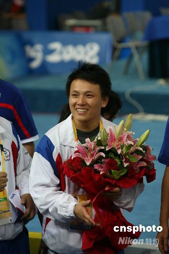 8月12日下午,女力士盧映锜為中華臺(tái)北舉重隊(duì)摘得北京奧運(yùn)會(huì)第二枚銅牌。北京奧運(yùn)會(huì)女子舉重六十三公斤級(jí)比賽中,她以二百三十一公斤的總成績(jī),獲得第三名。 中新社發(fā) 沈晨 攝