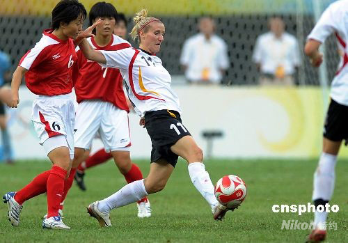 8月12日下午,奧運(yùn)女足小組賽進(jìn)行到第三輪,朝鮮女足和德國隊(duì)的較量在天津“水滴”體育場進(jìn)行,德國隊(duì)以1:0勝朝鮮隊(duì)。中新社發(fā) 陳文 攝