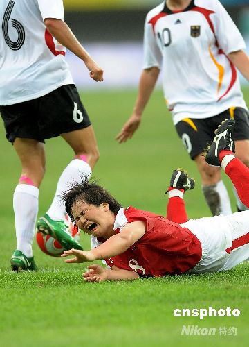 圖為德國女足11號隊(duì)員攻進(jìn)一球立下戰(zhàn)功。