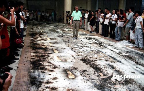 八月十二日晚,世界著名華裔藝術家、北京奧運會視覺特效藝術總設計蔡國強先生在福建泉州爆破他的又一新作“歷史足跡”。這次蔡國強把在北京奧運會開幕式上令世界人民印象深刻的古今同步、跨越時空的二十九個腳印呈現在家鄉人面前。中新社發 傅丹丹 攝