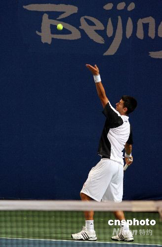 8月12日,網球男單第二輪爭奪中,大賽3號種子、塞爾維亞天才少年德約科維奇直落兩盤,以總比分2比0擊敗德國老將舒特勒,進入下一輪。中新社發 王韶驊 攝