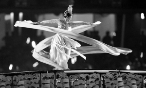 奧運開幕式《絲路》表演環節,一位飛天女神仙袂飄飄,瞬間就將宏大壯觀的畫面“切換”到安靜柔美的飛天舞中。