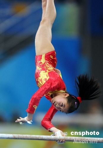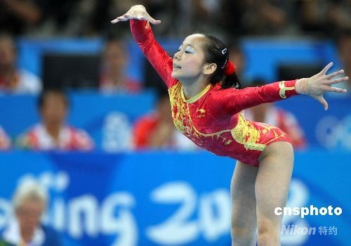 8月13日,北京奧運會女子體操團體決賽,中國體操隊的六名小姑娘創造歷史,以精彩的表現獲得總分188.900分,以領先美國隊2.375分的優勢摘取金牌,這是中國首次奪得奧運會體操女團桂冠。美國隊186.525分獲得銀牌,羅馬尼亞隊以總分181.525獲得銅牌。中新社發 任晨鳴 攝