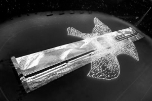 沙曉嵐告訴記者,這次開幕式創造了燈光界的一個紀錄,無論是科技含量還是設備數量,都超越了歷屆奧運會。他說:“鳥巢結構的檐口立面自然形成了一個高14米、周長500米的空中環幕,提供了投影的先天條件。我們配備了大量目前世界上最先進的燈具設備,各種電腦燈具近3000臺,還使用了140余臺大功率數碼投影設備,生動營造出燈光的各種多維效果。比如在點燃圣火的段落,手持火炬的李寧在空中沿“鳥巢”檐口立面向主火炬方向大步奔跑。此時的檐口立面由3臺大型數碼投影機3機重疊,組成了21組互相連接的畫面,播放北京奧運圣火在全球的傳遞過程。這樣的拼接前所未有。”