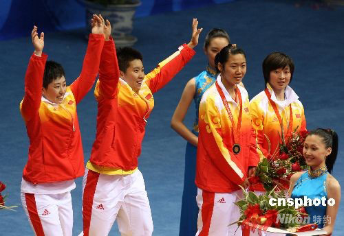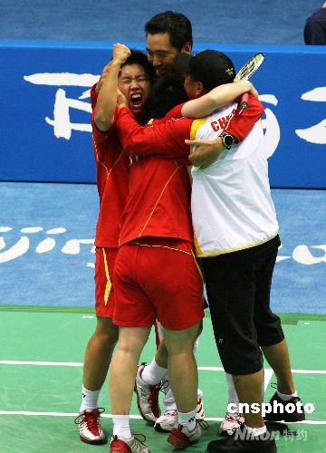 8月15日晚,中國組合杜婧、于洋在北京奧運會羽毛球女子雙打決賽中以2比0戰(zhàn)勝韓國組合李孝貞、李敬元,奪得金牌。 中新社發(fā) 武仲林 攝