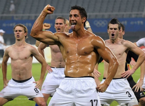 新西蘭國奧諸將在場邊跳起傳統(tǒng)的土著舞蹈——毛利舞,小伙子健美的身材令全場觀眾尖叫。