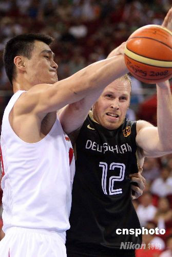最后一節(jié)開始后,姚明連得4分,中國隊(duì)51-39領(lǐng)先。王仕鵬連投帶罰,中國隊(duì)繼續(xù)擴(kuò)大優(yōu)勢。關(guān)鍵時(shí)刻,諾維茨基連得5分,幫本隊(duì)縮小差距。最后幾分鐘,中國隊(duì)命中率下降,德國隊(duì)趁機(jī)迫近比分。諾維茨基罰球命中后,比分變?yōu)?2-54。姚明中投得手,56-52領(lǐng)先4分。諾維茨基馬上命中3分,將分差縮小為僅剩一分。距結(jié)束28秒時(shí),易建聯(lián)命中2分,58-55。中國隊(duì)最終擊敗德國,鎖定八強(qiáng)席位。
