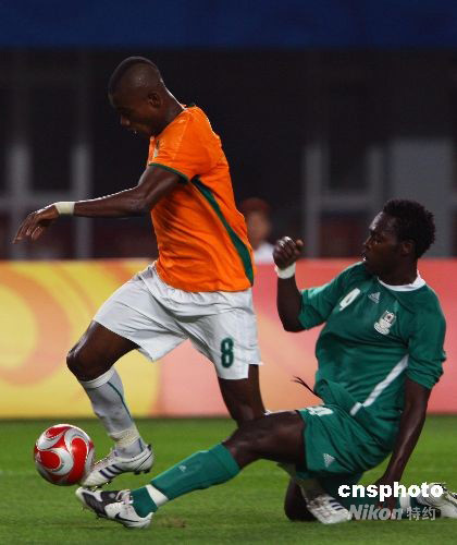8月16日晚,北京奧運會男子足球1/4決賽,尼日利亞對陣科特迪瓦的比賽在秦皇島奧體中心舉行,最終尼日利亞2:0勝科特迪瓦,挺進四強。中新社發 劉新 攝