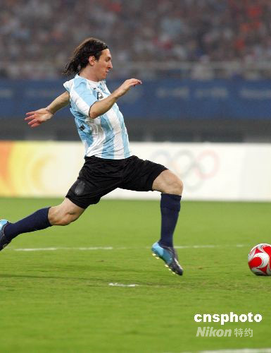 8月16日,北京奧運(yùn)會(huì)男足阿根廷VS荷蘭的比賽在上海體育場(chǎng)進(jìn)行。經(jīng)過(guò)120分鐘激戰(zhàn),阿根廷以2:1戰(zhàn)勝荷蘭挺進(jìn)四強(qiáng)。阿根廷15號(hào)梅西以一粒進(jìn)球和一次助攻,為阿根廷晉級(jí)半決賽立下戰(zhàn)功。 中新社發(fā) 湯彥俊 攝