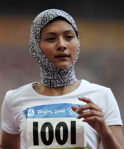 田徑賽場上阿富汗女選手別致的圍巾造型。