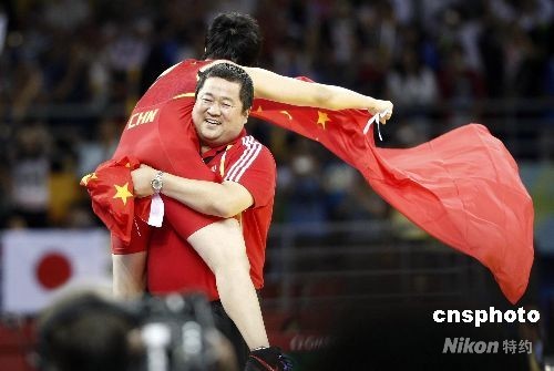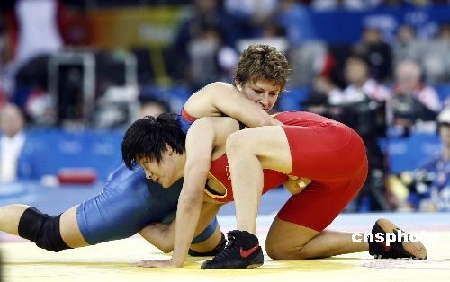 8月17日,中國選手王嬌獲得北京奧運(yùn)會(huì)女子自由式摔跤72公斤級(jí)金牌。中新社發(fā) 盛佳鵬 攝