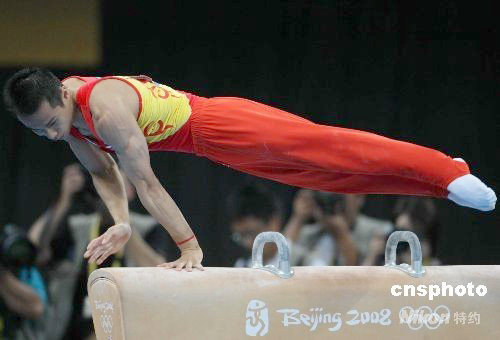 8月17日晚,北京奧運會體操單項決賽在北京奧林匹克公園內的國家體育館舉行,中國的“鞍馬王”肖欽獲得冠軍。中新社發 任晨鳴 攝
