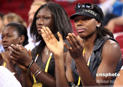 奧運(yùn)會(huì)男籃小組賽最后一輪8月18日打響,此前四戰(zhàn)四勝的美國(guó)“夢(mèng)八隊(duì)”以106比57橫掃德國(guó)隊(duì)。昨天剛剛獲得女子網(wǎng)球雙打冠軍的威廉姆斯姐妹到場(chǎng)為“夢(mèng)八隊(duì)”加油。中新社發(fā) 任晨鳴 攝
