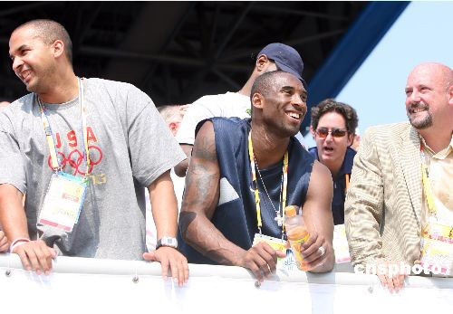 8月19日,美國(guó)籃球巨星科比前往奧運(yùn)沙灘排球現(xiàn)場(chǎng),為美國(guó)選手加油。 中新社發(fā) 武仲林 攝