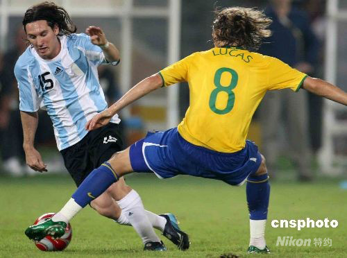 梅西(15號)領銜的阿根廷隊以3比0完勝巴西隊