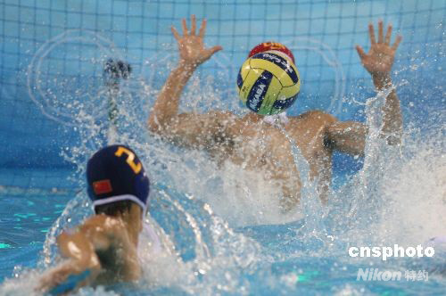 8月20日,中國隊在奧運男子水球四分之一決賽中以8:13負于希臘隊,無緣四強。圖為比賽精彩瞬間。 中新社發 武仲林 攝