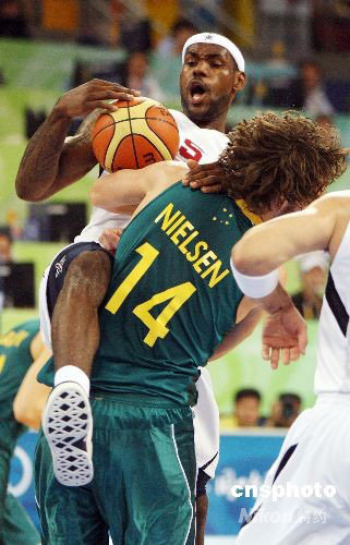 北京奧運會男子籃球八進四淘汰賽8月20日在五棵松籃球館開戰,美國“夢八隊”遭遇澳大利亞隊的頑強抵抗,最后以116比85擊敗澳大利亞隊進入奧運會男籃四強。中新社發 任晨鳴 攝