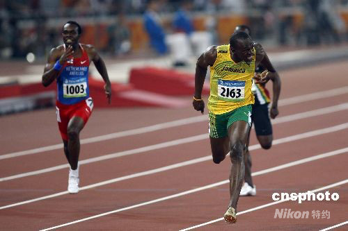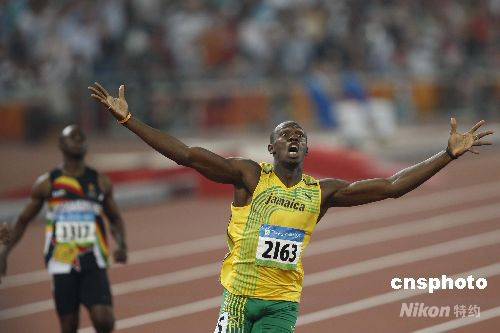 8月20日晚,國家體育場舉行的北京奧運會男子200米決賽中,牙買加選手尤塞恩·博爾特以19.30創造新的世界紀錄并獲得金牌。這是他在本屆奧運會上繼百米金牌后奪得的第二枚金牌。 中新社發 盛佳鵬 攝