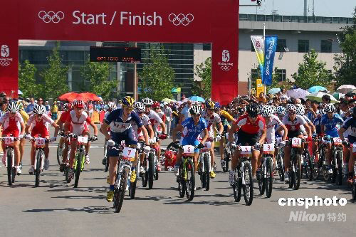 8月23日,北京奧運(yùn)會(huì)自行車山地分項(xiàng)女子越野賽在北京老山山地自行車場(chǎng)舉行。德國(guó)選手扎比內(nèi)·施皮茨一路保持領(lǐng)先,最終以1小時(shí)45分11秒的成績(jī)順利摘金。波蘭選手馬婭·沃什佐夫斯卡獲得銀牌,俄羅斯選手伊琳娜·卡連季耶娃獲得銅牌。中國(guó)選手任成遠(yuǎn)獲得了第5名,另一位中國(guó)選手劉穎最終獲得第12名。中新社發(fā) 盛佳鵬 攝