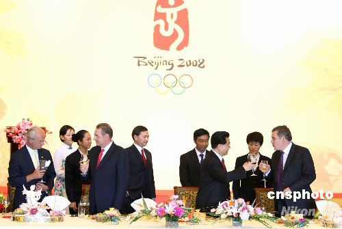 8月24日,中國國家主席胡錦濤和夫人劉永清在北京釣魚臺國賓館舉行宴會,款待前來出席北京奧運會閉幕式的國際貴賓。 中新社發 廖文靜 攝
