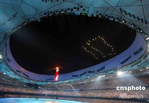 圖:奧運閉幕式“鳥巢”上空呈現煙花倒計時