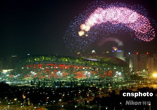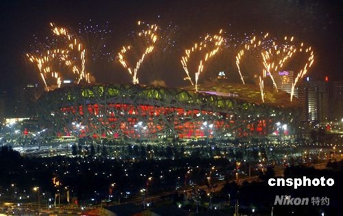 圖:北京奧運(yùn)會閉幕 漫天煙花萬眾觀看(2)
