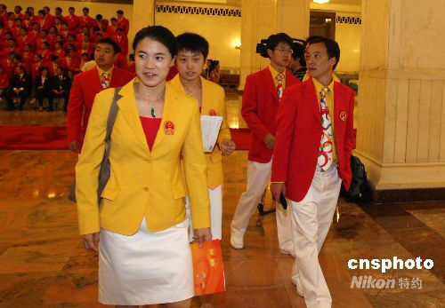 8月26日,2008年北京奧運會中國體育代表團總結大會在北京人民大會堂金色大廳舉行。王楠、郭躍參加北京奧運會中國體育代表團總結大會。中新社發 廖文靜 攝